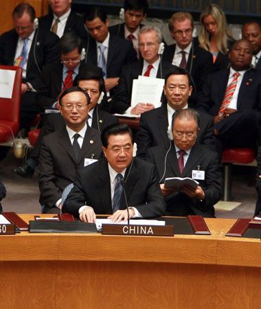 9月24日,胡锦涛在纽约出席安理会核不扩散与核裁军峰会并发表重要讲话。新华社记者鞠鹏 摄
